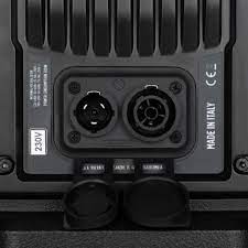 3 voies, 3 presets, 2 poignées, SPL max 138 dB poids 45 kgs.